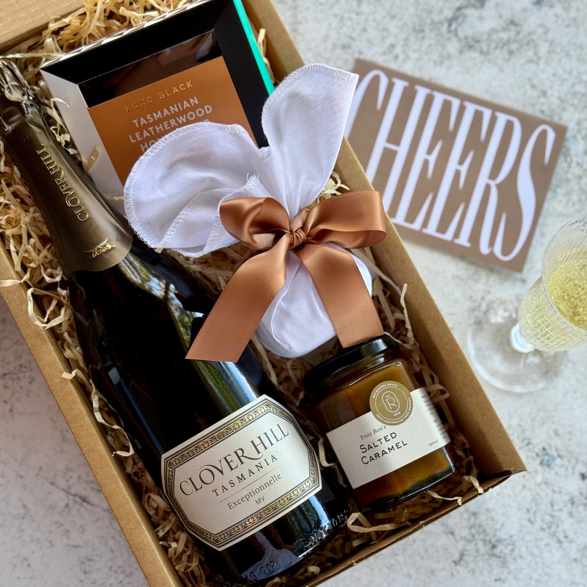 Includes:Clover Hill 'Exceptionelle' Tasmanian SparklingKoko Black Tasmanian Leatherwood Honeycomb in Dark ChocolateMini Christmas PuddingTres Bon Salted Caramel Sauce Packaged in an Epicure gift box