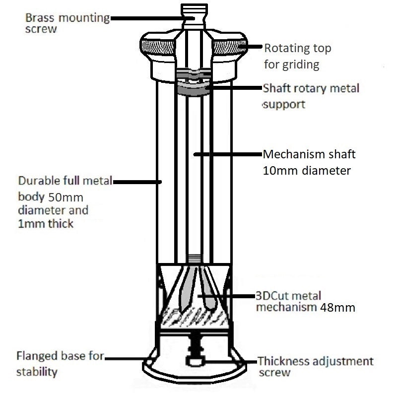 Handcrafted in Thessaloniki, Greece. Alexander Mills is a family run business which has operated since 1977, producing exquisitely designed grinders from solid brass with a 1mm material thickness and a cast grinder that is designed for optimal grinding.