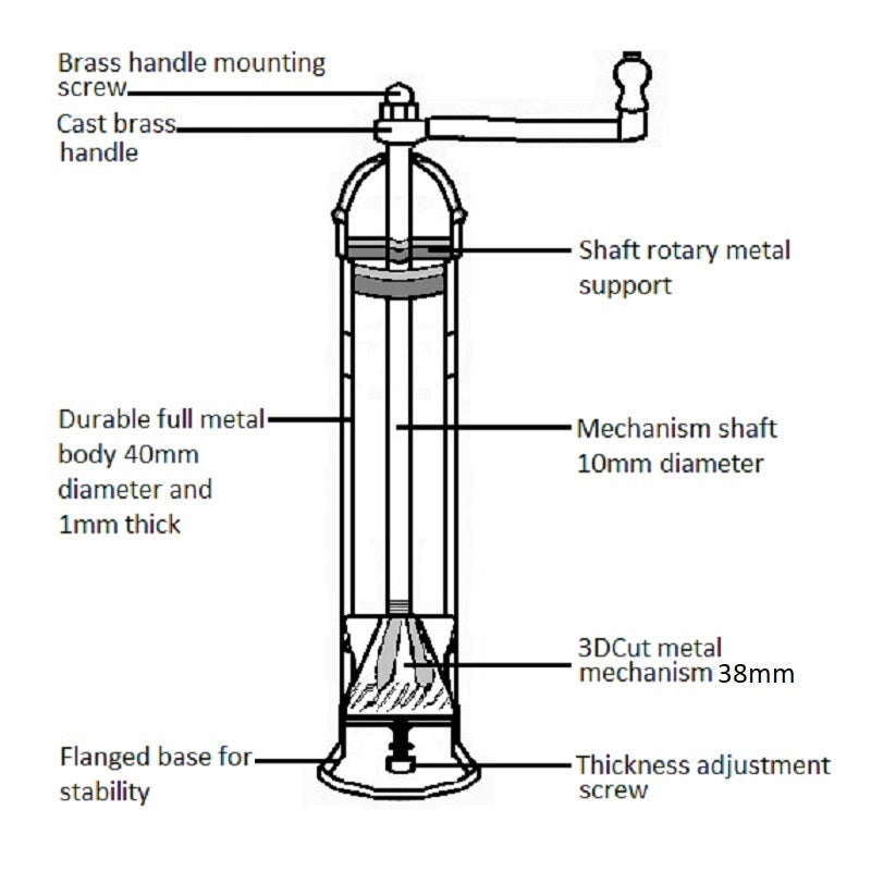 Handcrafted in Thessaloniki, Greece. Alexander Mills is a family run business which has operated since 1977, producing exquisitely designed grinders from solid brass with a 1mm material thickness and a cast grinder that is designed for optimal grinding.